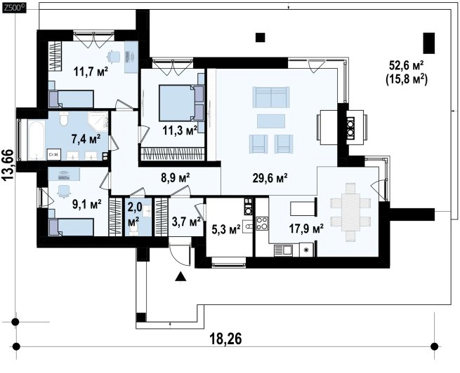 На плоской кровле в течение всей зимы может собраться большой объем снега, частично льдины, которые для конструкции дома опасности не представляют (наши проекты учитывают максимально возможные снежные нагрузки). Но для кровельного покрытия образование льда нежелательно.