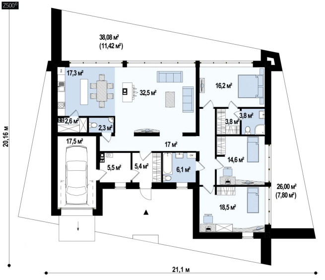 На плоской кровле в течение всей зимы может собраться большой объем снега, частично льдины, которые для конструкции дома опасности не представляют (наши проекты учитывают максимально возможные снежные нагрузки). Но для кровельного покрытия образование льда нежелательно.