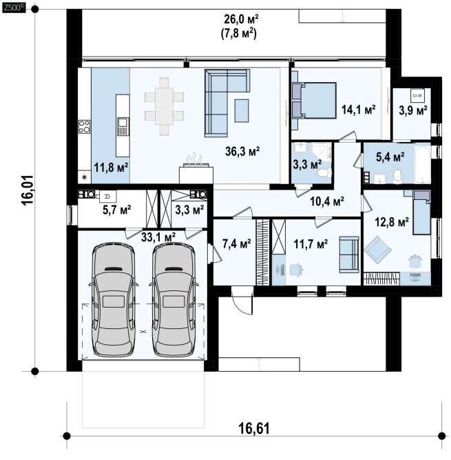 На плоской кровле в течение всей зимы может собраться большой объем снега, частично льдины, которые для конструкции дома опасности не представляют (наши проекты учитывают максимально возможные снежные нагрузки). Но для кровельного покрытия образование льда нежелательно.