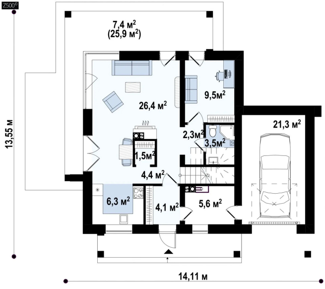Возможно строительство альтернативных видов кровли, например эксплуатируемая кровля для зеленых зон, террас, бассейнов и т.п., согласно пожеланиям клиента