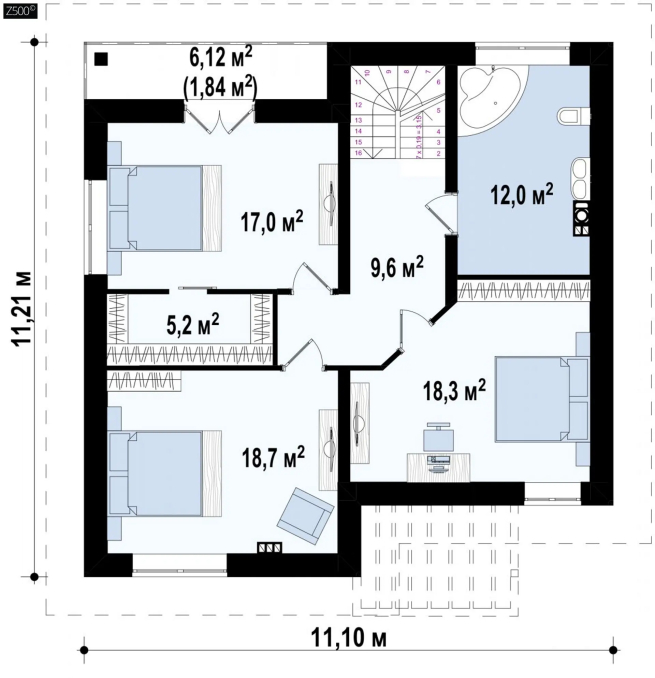 Возможно строительство альтернативных видов кровли, например керамическая плитка, компазитная черепица и т.п., согласно пожеланиям клиента и по подтверждению конструктора.