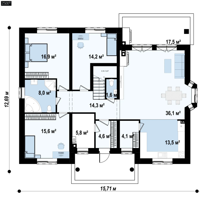 Возможно строительство альтернативных видов кровли, например керамическая плитка, компазитная черепица и т.п., согласно пожеланиям клиента и по подтверждению конструктора.