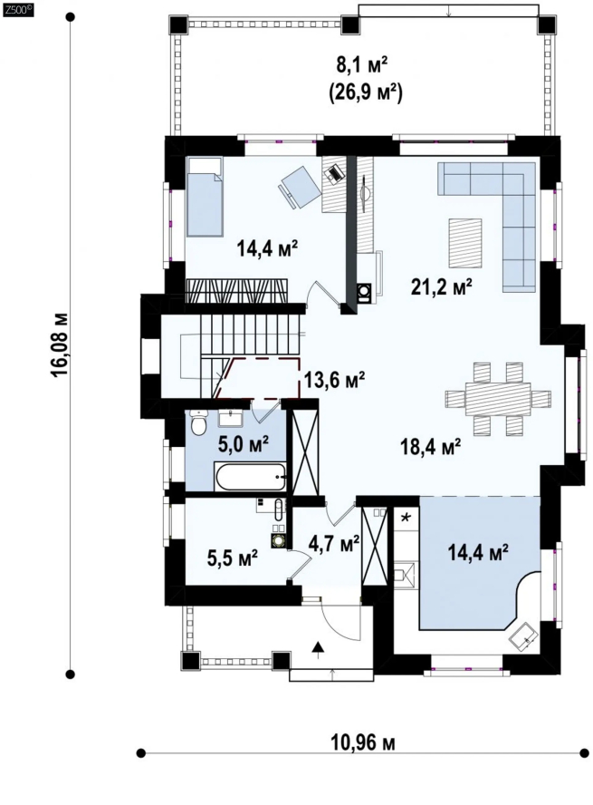Возможно строительство альтернативных видов кровли, например керамическая плитка, компазитная черепица и т.п., согласно пожеланиям клиента и по подтверждению конструктора.