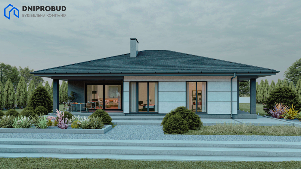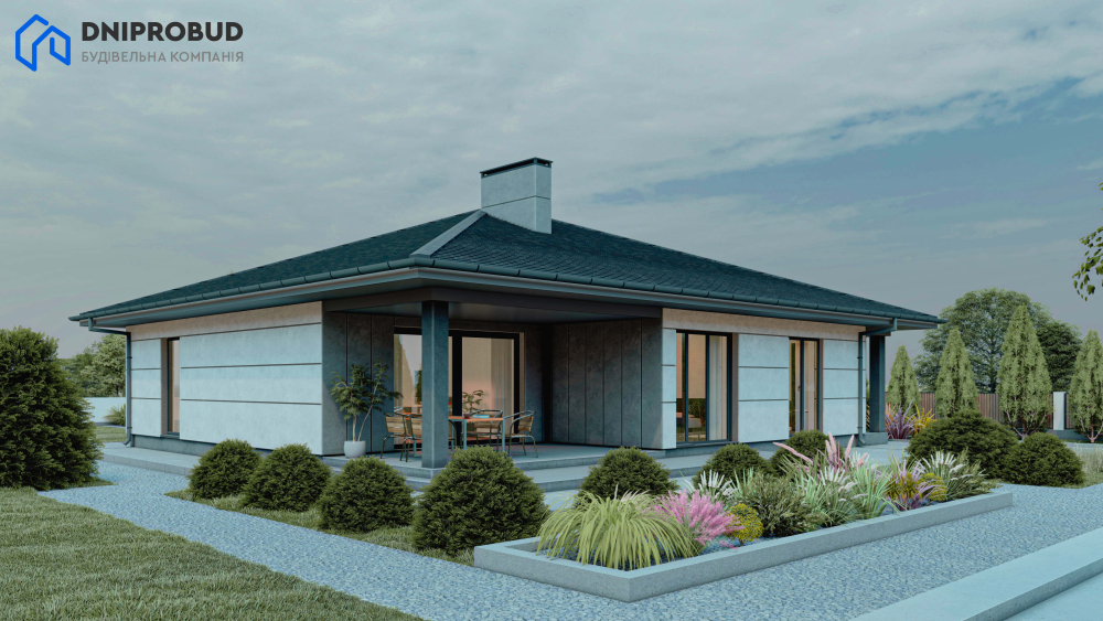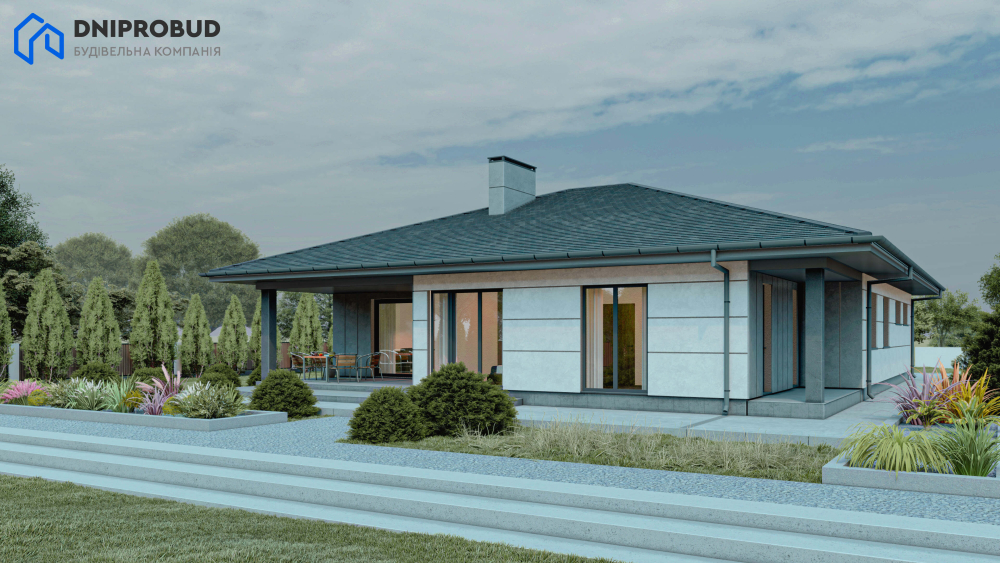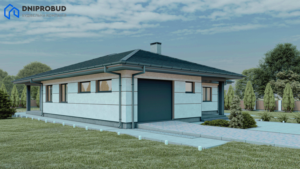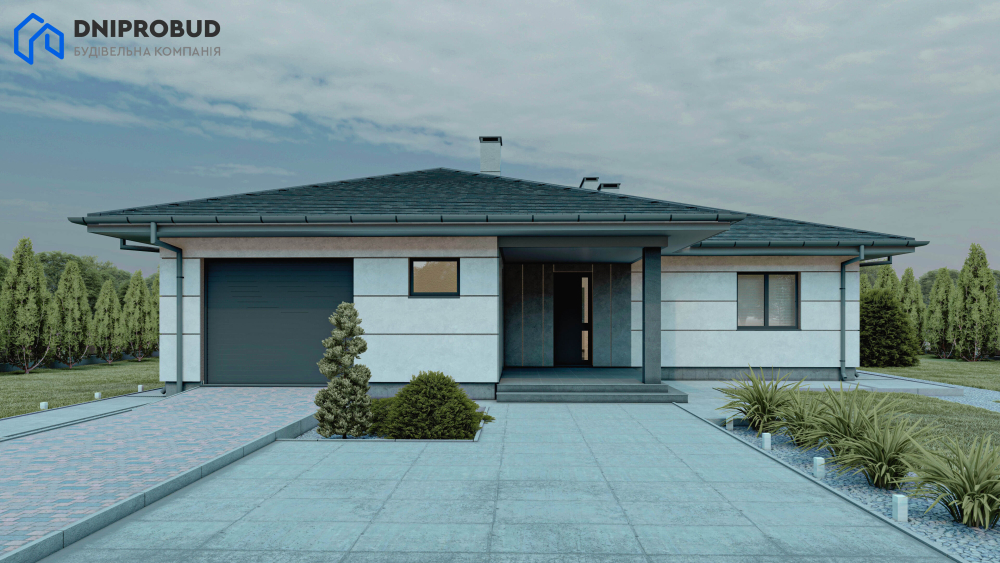 Db 34 - це одноповерховий будинок із продуманим плануванням і чотирма спальнями, у якому гармонійно поєднуються елементи сучасної та класичної архітектури. Завдяки стриманому, але стильному зовнішньому вигляду, будівля легко інтегрується в будь-яке природне оточення.